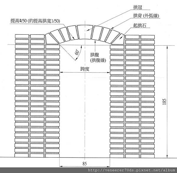 拱 背 : 為拱最外之弧面,此弧線稱為拱背線或外弧線。